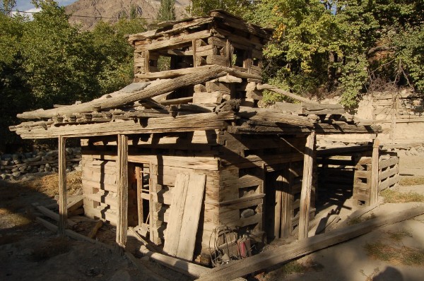 Abbildung 18: Alte, im Wohnbezirk der Khanqa-Gebetshalle von Shigar gelegene Moschee (Oktober 2007) | | Abbildung 19: Astana hinter der alten Moschee im Khanqa-Wohnbezirk von Shigar (Oktober 2007) | | Abbildung 20: Alte, im Jahre 2008 abgerissene Moschee von Nar (Oktober 2007) | | Abbildung 21: Zerfallener Astana in der Nähe der Moschee von Nar (Oktober 2007) |