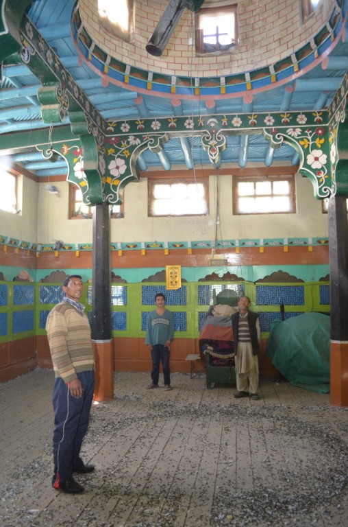 Abbildung 6: Das Innere der Matam Serai von Gramthang. Die Belichtung erfolgt wie in Gramthang durch die Fenster in der Dachkuppel und im zweistufigen Dachaufbau.(26. September 2013) |