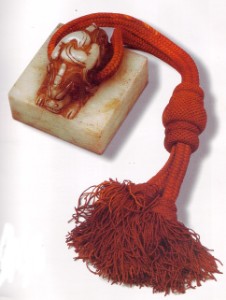Abbildung 8: Goldsiegel des mongolischen Prinzen Bailan (Höhe: 10,6cm, Breite der Stempelfläche: 11,3 cm) | | Abbildung 9: Jadesiegel des tibetischen kaiserlichen Lehrers Sanggye Pel (Sangs-rgyas dpal) (Höhe: 8,4 cm. Breite der Stempelfläche: 10,9 cm) | | Abbildung 10: Jadesiegel des tibetischen kaiserlichen Lehrers Dragpa Öser (Grags-pa ´od-zer) (Höhe: 8,1 cm, Breite der Stempelfläche: 9,6 cm) |